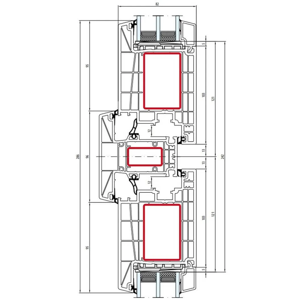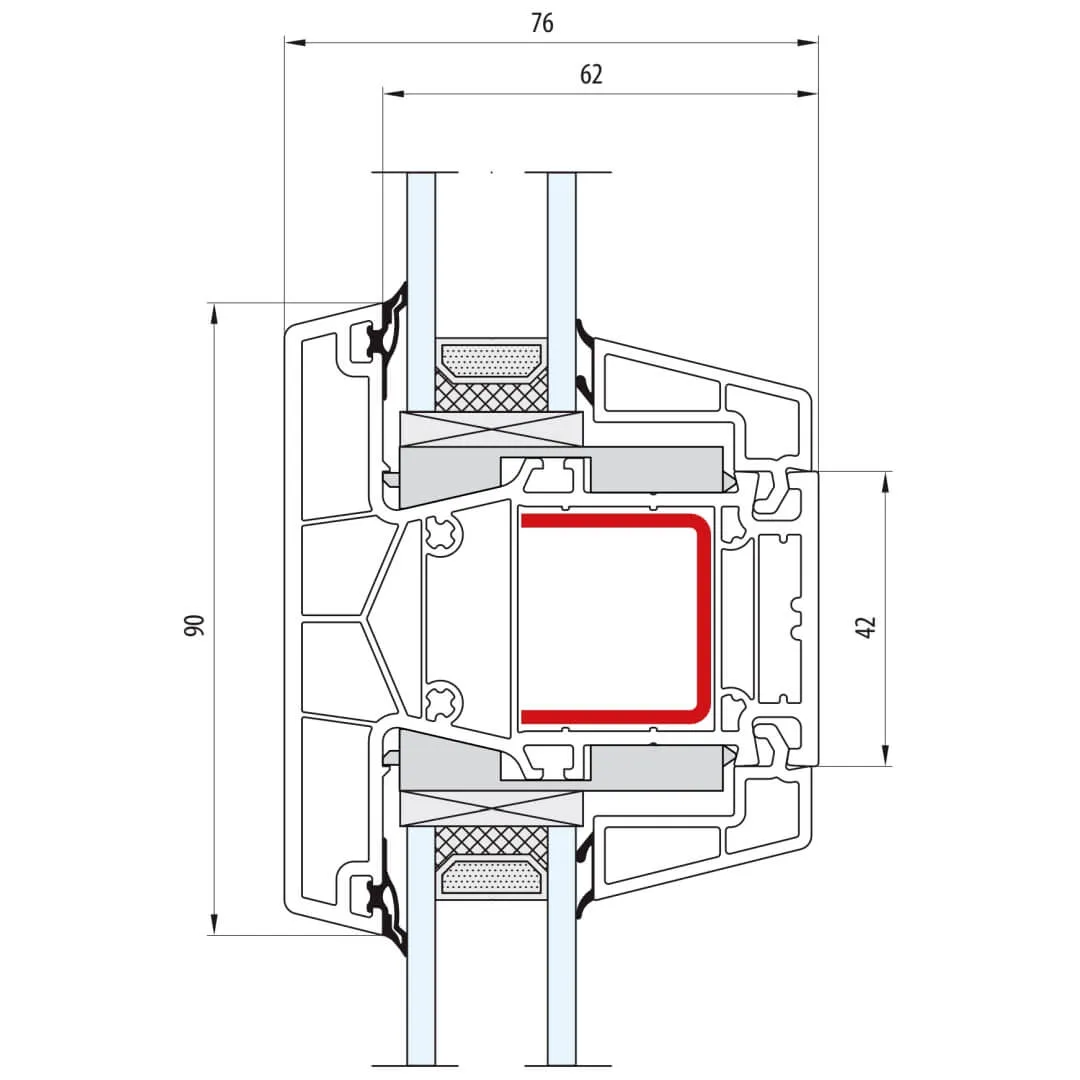 The central gasket dramatically upgrades both thermal and acoustic performance compared to conventional two-seal systems. Technically, the system meets the structural requirements for passive house standards in Europe — a benchmark of extreme energy efficiency.