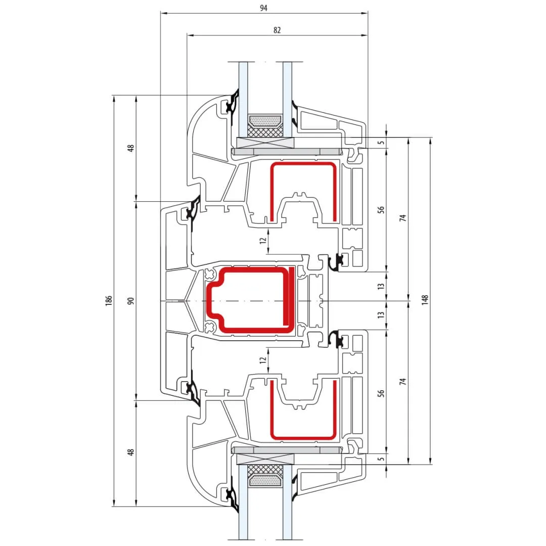 UPVC Window – GreenEvolution 76 AD/MD with mullion 90mm (narrow, structural)